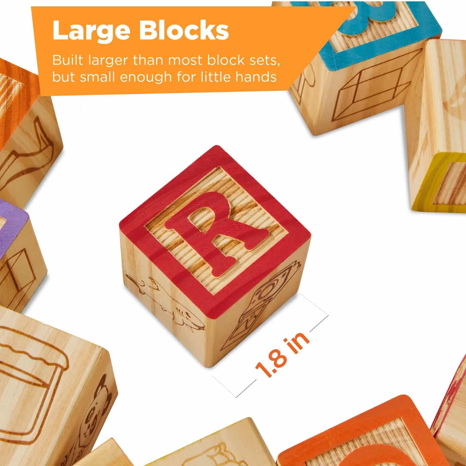 Crafted with quality wood, each block features vibrant and engaging illustrations of alphabet letters, making it a visually appealing tool for early education. The 40-piece set provides a comprehensive collection of letters, allowing children to build words, identify letters, and explore the basics of spelling.