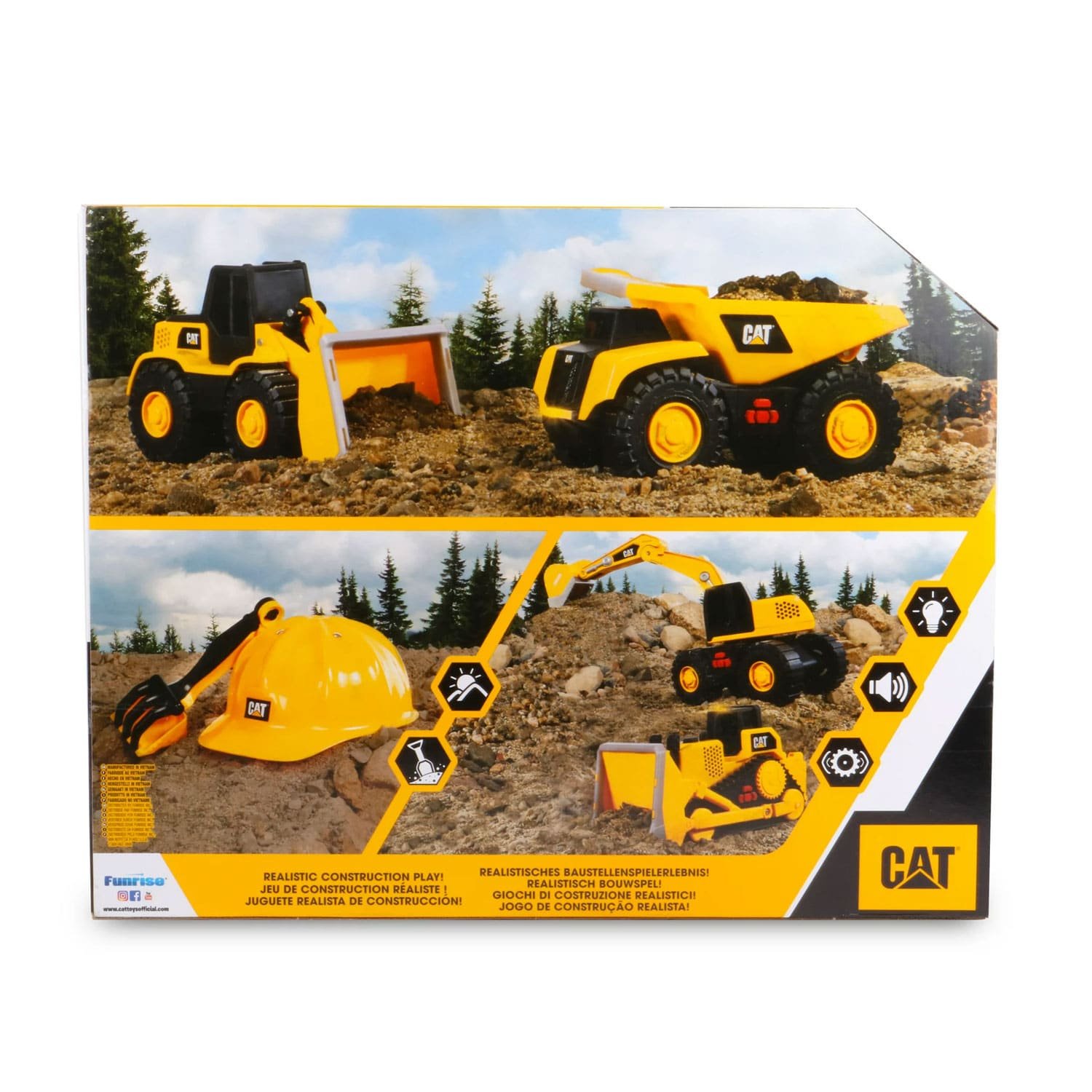 Introducing the Cat Tough Machines Light & Sound Toy Vehicle Set – an immersive play experience for young construction enthusiasts. This set, which includes the officially licensed Cat Dump Truck and Front End Loader, brings the excitement of construction sites to life through realistic light and sound effects.